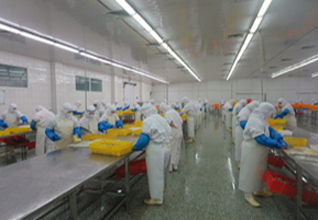 冷蔵庫で保管された原料は、徹底した温度管理をしながら解凍され、各製品に加工されます。